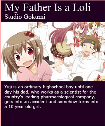 this is fucking bullshit. they could have called this “loli pop” and they fucking didn’t. they had an anime where they turned a guy’s dad in to a little girl and they didn’t fucking call it “loli pop” this is so fucking stupid god dammit