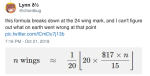 arcticninetales789 Uncategorized November 16, 2018December 10, 2018 1 Minute anarchist-bakery: buzzfeed: This Restaurant Has The Wildest Wing Pricing Structure And People Are Doing Math To Try To Figure It Out THEY FUCKING PLOTTED IT IN MATLAB I’M CRYING Share this: Share on X (Opens in new window) X Share on Facebook (Opens in new window) Facebook Like Loading... Related Published by arcticninetales789 View all posts by arcticninetales789 Published November 16, 2018December 10, 2018